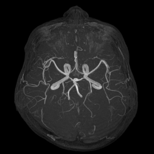 MRIの撮影技術を使って、血管を描出する方法です。頭蓋内外の重要な動脈(総頸動脈、内頸動脈、ウィリス輪、椎骨動脈、脳底動脈)の変化をとらえることができます。
